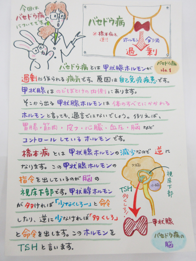 バセドウ病とは甲状腺ホルモンが過剰に作られる病気です。